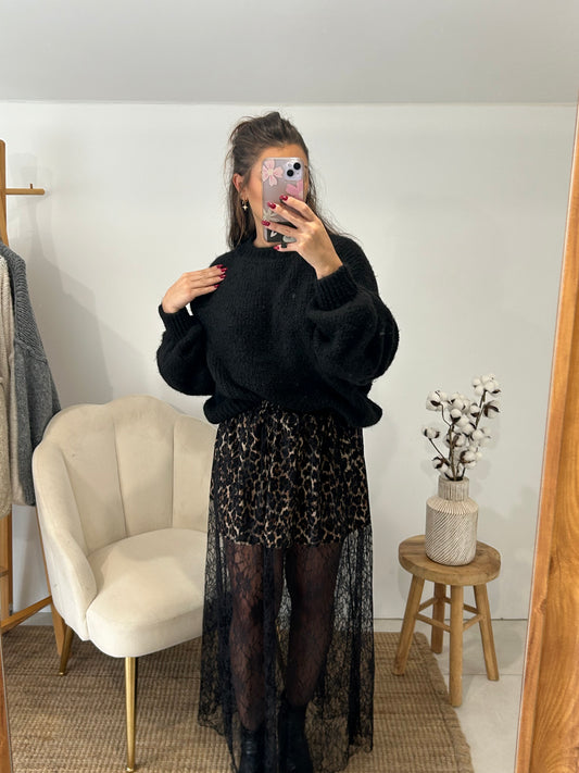 JUPE DENTELLE DOUBLURE LÉOPARD